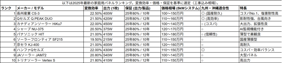 カテゴリー: 太陽光・蓄電池 / タグ: 太陽光パネルランキング2025, 家庭用太陽光パネルおすすめ, 太陽光発電九州沖縄)
