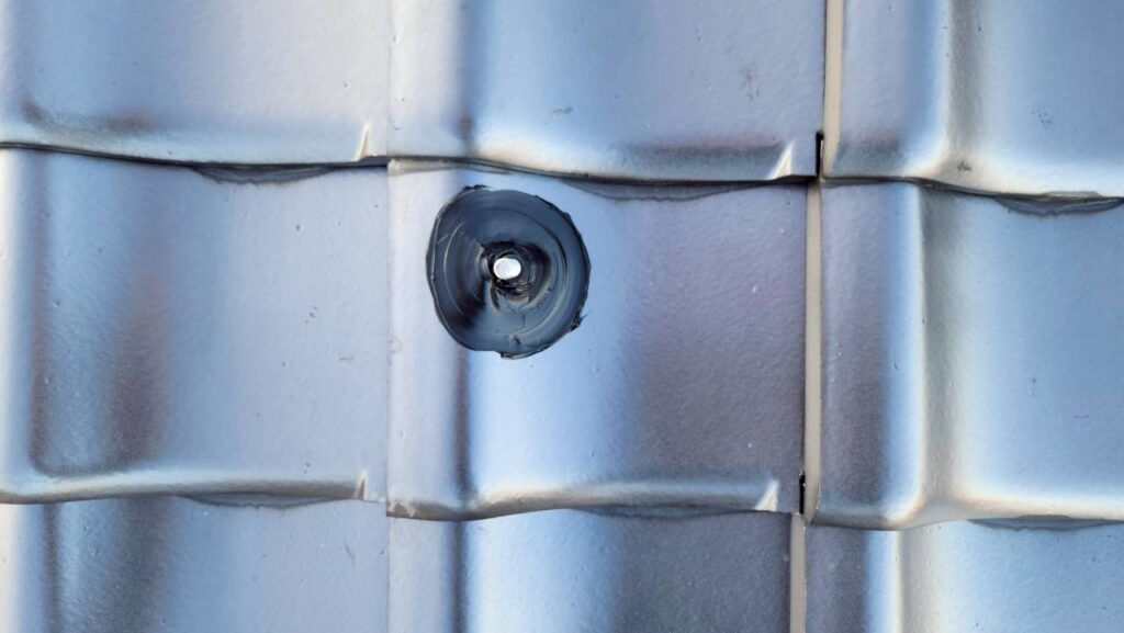 瓦にボルトを通す穴を開けますが、ここでも一工夫。穴の周りに再びコーキングで「ダム(土手)」を作ります。